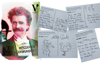 Unser Publikum hat Johann Strauß anlässlich der Premiere von Eine Nacht in Venedig, die genau am 200. Geburtstag des Walzerkönigs am 25. Oktober 2025 stattfand, Postkarten mit Geburtstagsgrüßen in den Musiktheaterhimmel geschickt!